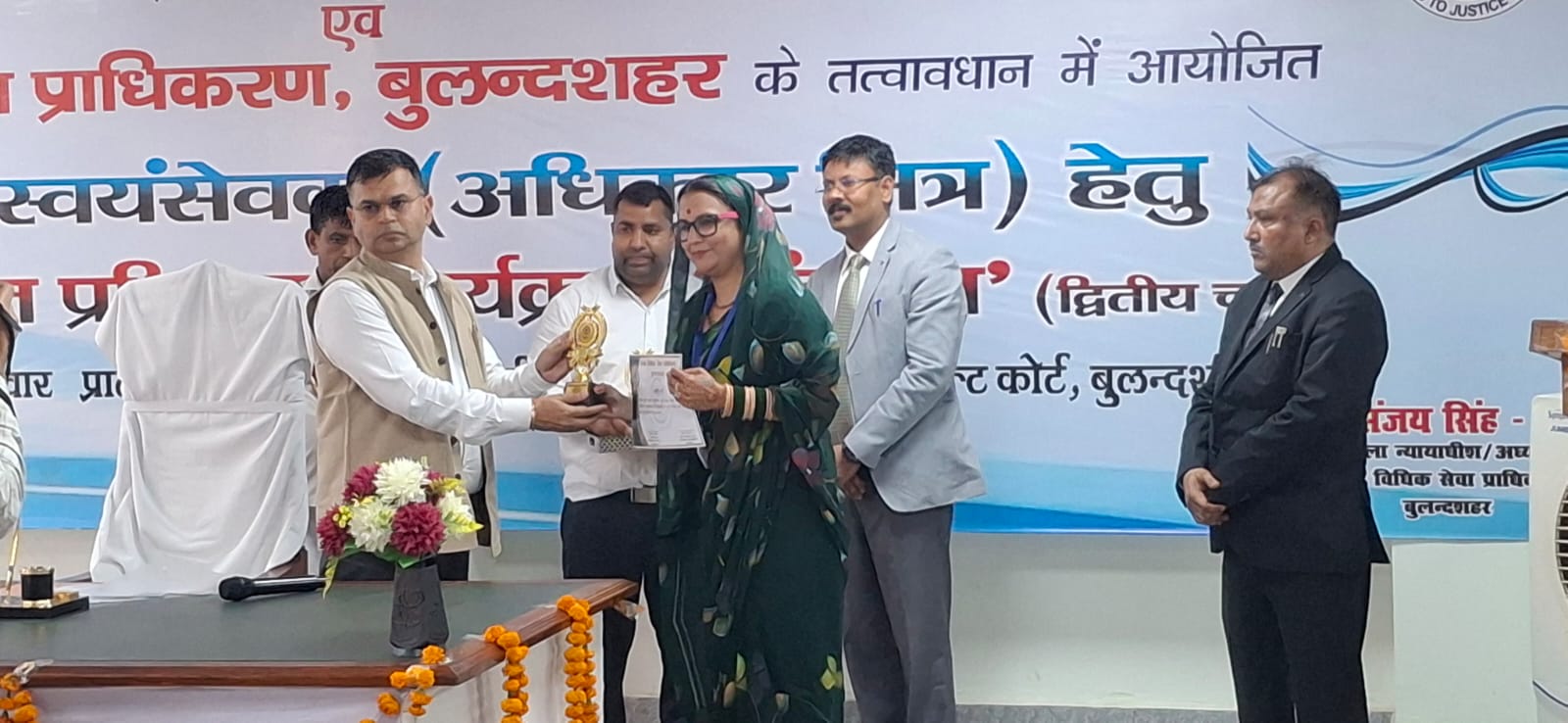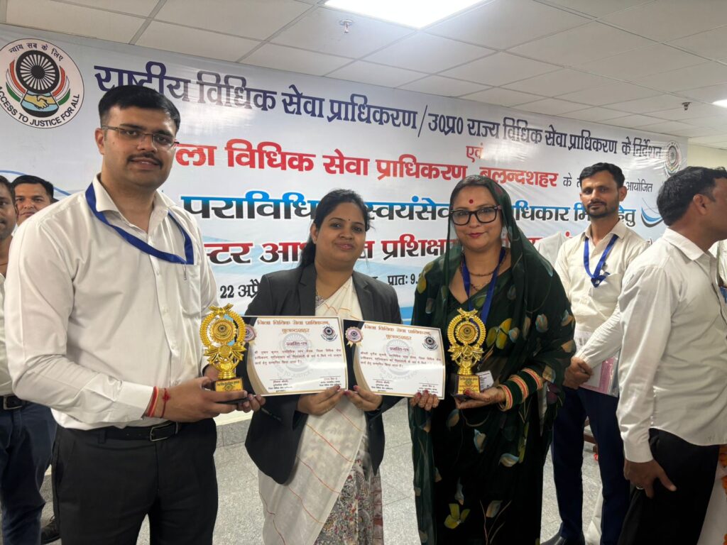 गाजियाबाद। जिला विधिक सेवा प्राधिकरण, बुलंदशहर द्वारा आयोजित एक दिवसीय ओरिएंटेशन प्रशिक्षण कार्यक्रम में गाजियाबाद जनपद के पैरालीगल वॉलंटियर्स दुर्गेश शर्मा एवं तुषार शर्मा को उनके उत्कृष्ट कार्य के लिए बेस्ट पीएलवी अवार्ड से सम्मानित किया गया। यह सम्मान जिला जज बुलन्दशहर संजय सिंह प्रथम एवं विकास चौधरी, सचिव, जिला विधिक सेवा प्राधिकरण, बुलंदशहर द्वारा प्रदान किया गया। कार्यक्रम में नेहा बनौधिया, सचिव, जिला विधिक सेवा प्राधिकरण, गाजियाबाद की गरिमामयी उपस्थिति रही।